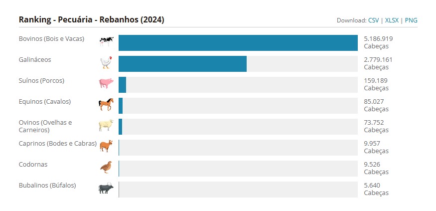 O rebanho de codornas no Acre é um dos menores entre as categorias de aves do estado, com apenas 9.526 cabeças em 2024, segundo dados do Instituto Brasileiro de Geografia e Estatística (IBGE). Esse número representa uma fração ínfima diante de outros tipos de aves e animais no estado, que, apesar de registrar crescimento geral no efetivo animal, concentra a maior parte de suas cabeças em bovinos e galinhas, que juntos somam a grande maioria do total de 8,3 milhões de animais no Acre.