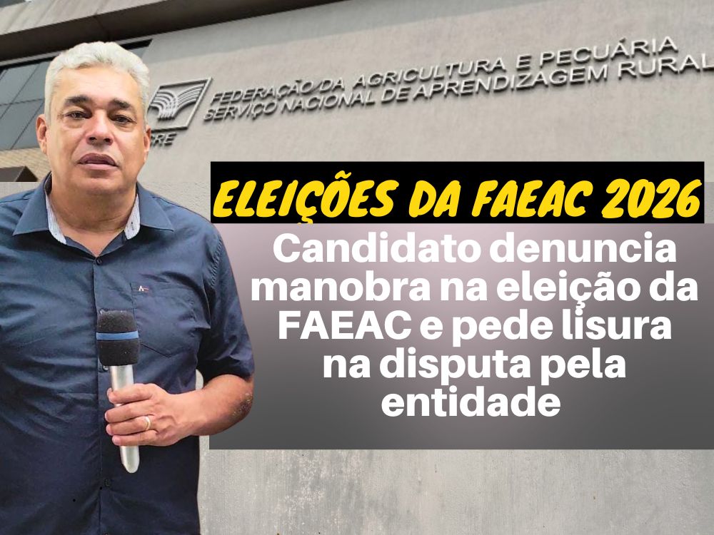O presidente do Sindicato Rural de Tarauacá, Zé Filho, candidato à presidência da Federação da Agricultura e Pecuária do Estado do Acre (FAEAC) pelo grupo “Renovação e Protagonismo”, usou as redes sociais para fazer duras críticas ao processo eleitoral da entidade. Em uma sequência de vídeos publicados recentemente, o dirigente afirmou que os bastidores da disputa estariam marcados por tentativas de impedir a participação de chapa concorrente no pleito. O candidato afirmou que a eleição da FAEAC pode estar sendo conduzida para um “confronto de tapetão”, em vez de uma disputa direta no voto entre os produtores rurais.
