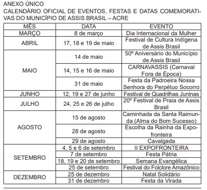 Decreto municipal oficializa datas da II EXPOFRONTEIRA em Assis Brasil