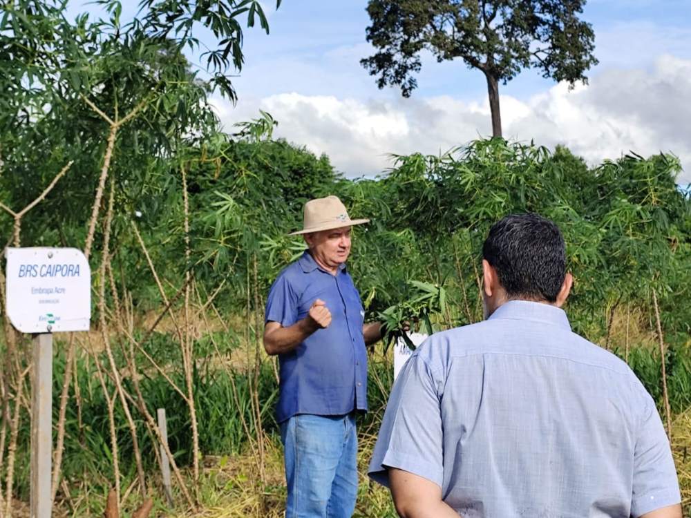 A dinâmica incluiu a apresentação de quatro variedades de mandioca, sendo três já consolidadas pela Embrapa e uma em fase de testes no estado. Entre os destaques está a variedade Caipora, cultivada há mais de 20 anos, além de materiais oriundos de outras regiões e selecionados por agricultores familiares do Acre. A iniciativa busca ampliar a produtividade e adaptar cultivares às condições locais.