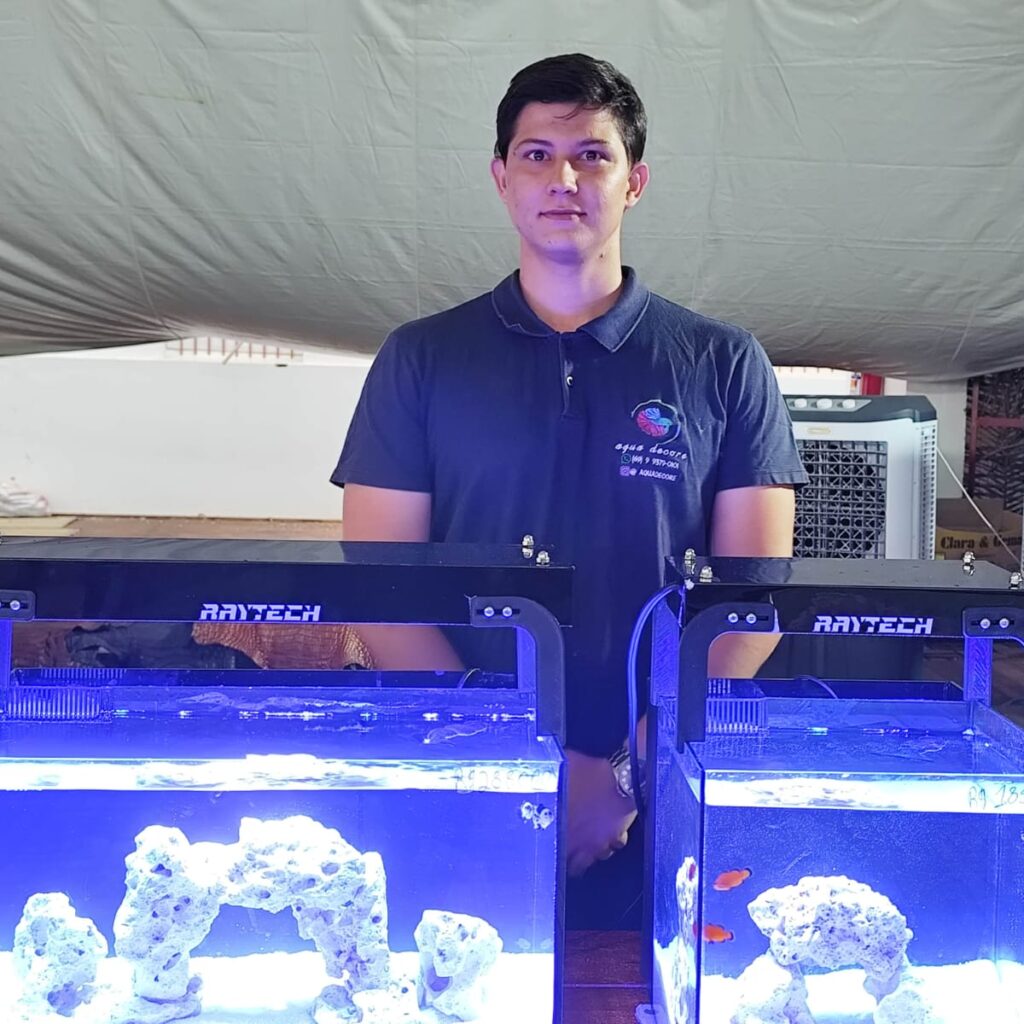 Com essa vivência, decidiu estudar o aquarismo a fundo e passou a ensinar os clientes sobre o cuidado correto com as espécies, especialmente o peixe beta, um dos mais vendidos e também um dos que mais sofriam com manejo inadequado. O negócio cresceu rápido, e hoje a Aqua Decore distribui peixes e equipamentos para todo o estado, suprindo tanto pet shops quanto criadores que mantêm aquários e lagos ornamentais.