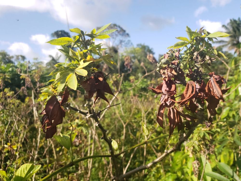 A vassoura-de-bruxa da mandioca é uma doença causada por um fungo do gênero Moniliophthora, o mesmo responsável por graves prejuízos em plantações de cacau. Presente em alguns estados da região norte, a enfermidade provoca deformações e secamento dos brotos, comprometendo o crescimento e a produtividade das lavouras.