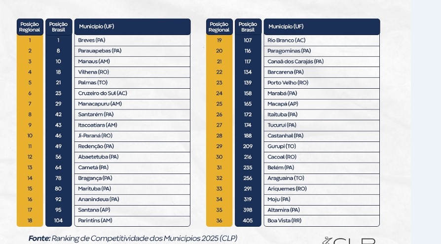 O Acre mais uma vez aparece mal colocado no Ranking de Competitividade dos Municípios 2025, divulgado pelo Centro de Liderança Pública (CLP). Rio Branco, capital acreana, ocupa apenas a 107ª posição nacional e a 19ª na região Norte, ficando atrás de cidades menores como Breves (PA), Vilhena (RO) e Cruzeiro do Sul (AC). O levantamento avalia diversos pilares de gestão, mas o de Meio Ambiente ganhou destaque por revelar que o estado ainda está longe de equilibrar crescimento econômico com sustentabilidade.
