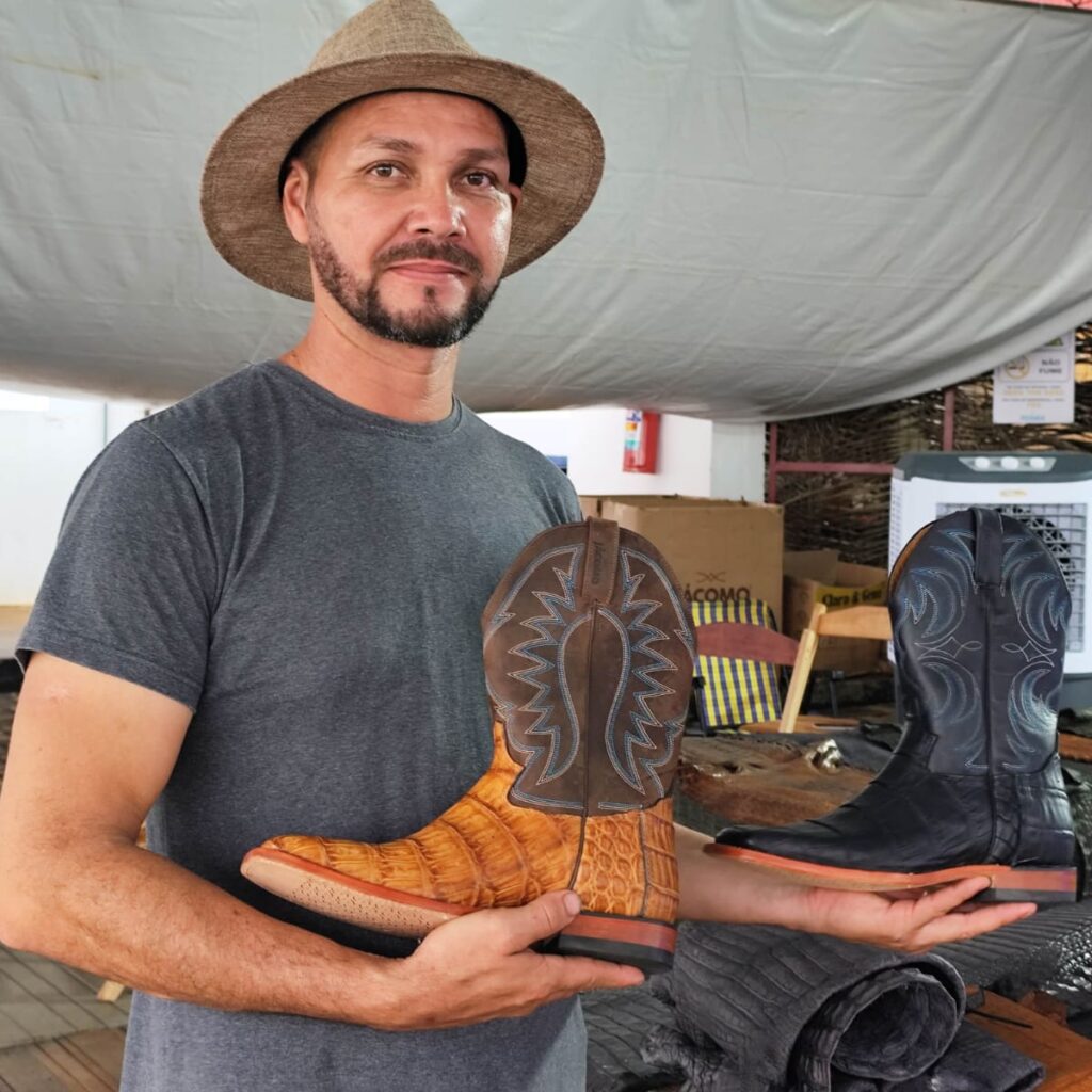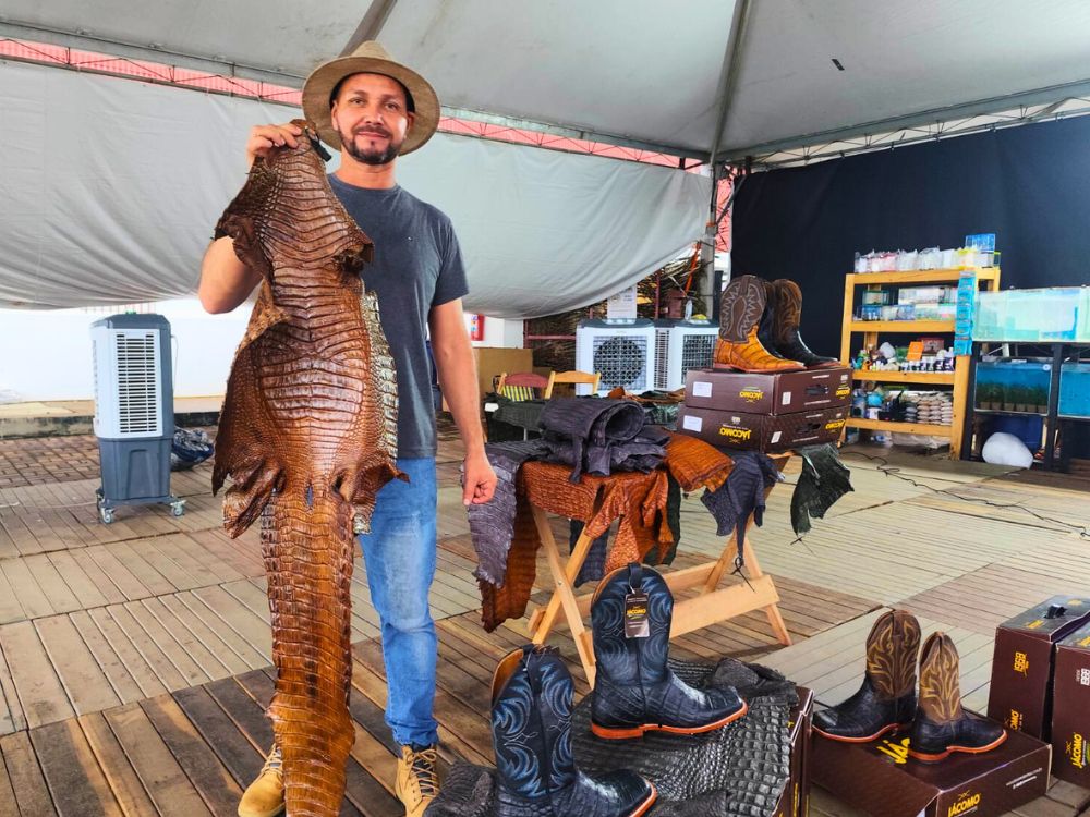 Manejo sustentável impulsiona renda: couro e botas de jacaré chegam a R$ 1.600 na Agrotec