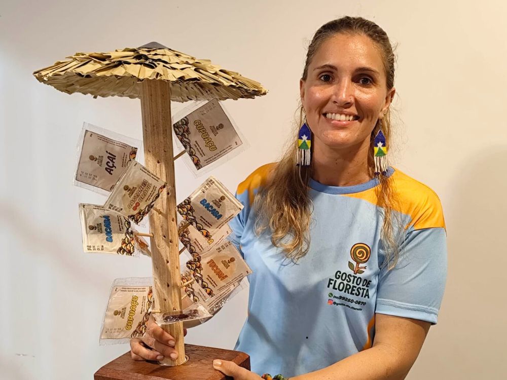 Os sabores da floresta ganharam forma de doce e colheram curiosidade na Agrotec. Pirulitos feitos com frutas pouco conhecidas até mesmo por muitos amazônidas, como patauá, bacaba, macaúba, araçá-boi e da amêndoa castanha-do-brasil, chamaram atenção de produtores e visitantes. A responsável pela novidade é Bruna Buzô, doceira por paixão, que encontrou no aproveitamento das frutas regionais uma forma de valorizar o que muitas vezes apodrece no chão do quintal.