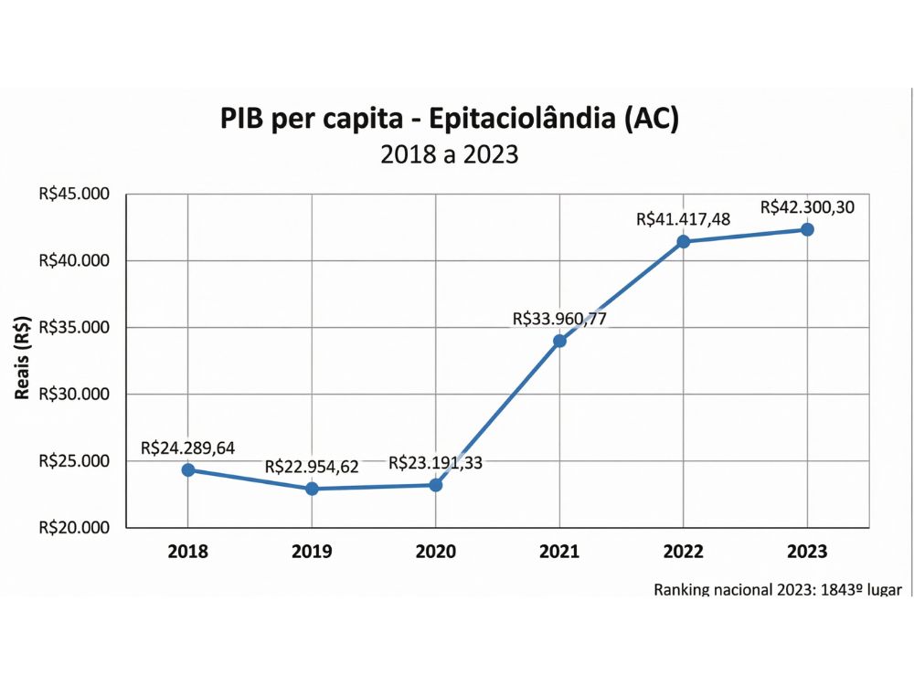 Na comparação regional, Epitaciolândia lidera com folga. Brasiléia registrou PIB per capita de R$ 35.761,56 em 2023, Xapuri alcançou R$ 34.315,94 e Assis Brasil ficou com R$ 23.131,67. Todos os municípios apresentaram crescimento nos últimos anos, mas em ritmo inferior ao de Epitaciolândia, que se consolidou como o principal polo econômico do Alto Acre.